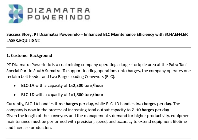- Success Story: PT Dizamatra Powerindo - Enhanced BLC Maintenance Efficiency with SCHAEFFLER LASER.EQ
