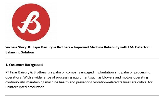 - Success Story: PT Fajar Baizury & Brothers - Improved Machine Reliability with FAG Detector III Bala